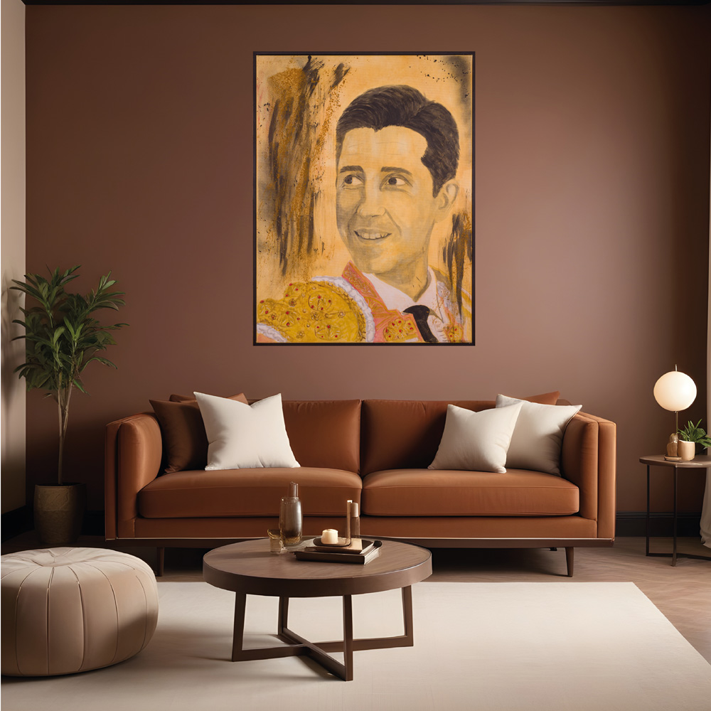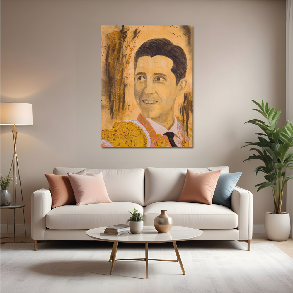 Obra perteneciente a la colección Albero de Nombre «Albero Pedrito de Portugal» retrato del matador de toros Pedrito de Portugal. Con unas dimensiones de 80x60cm, realizada en lienzo montado en bastidor pintado con acrílico y albero de la plaza de toros de “Los Califas de Córdoba”