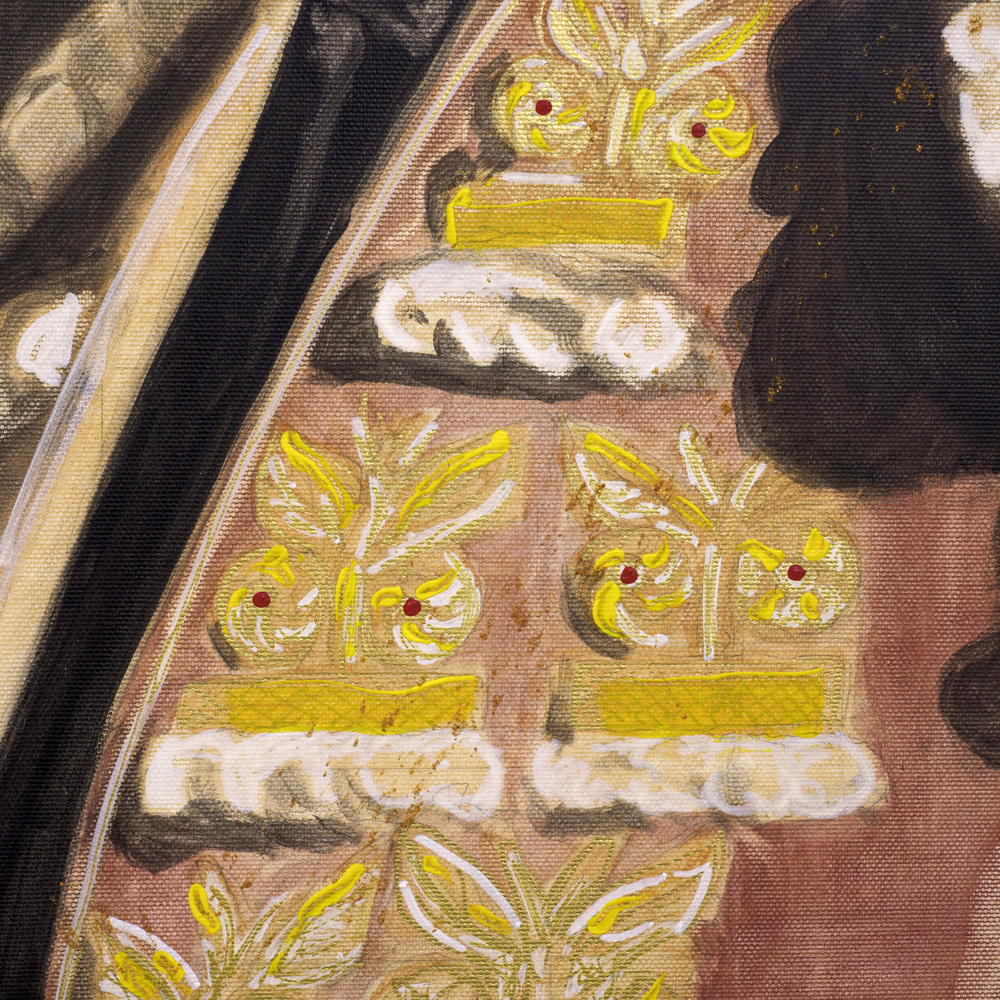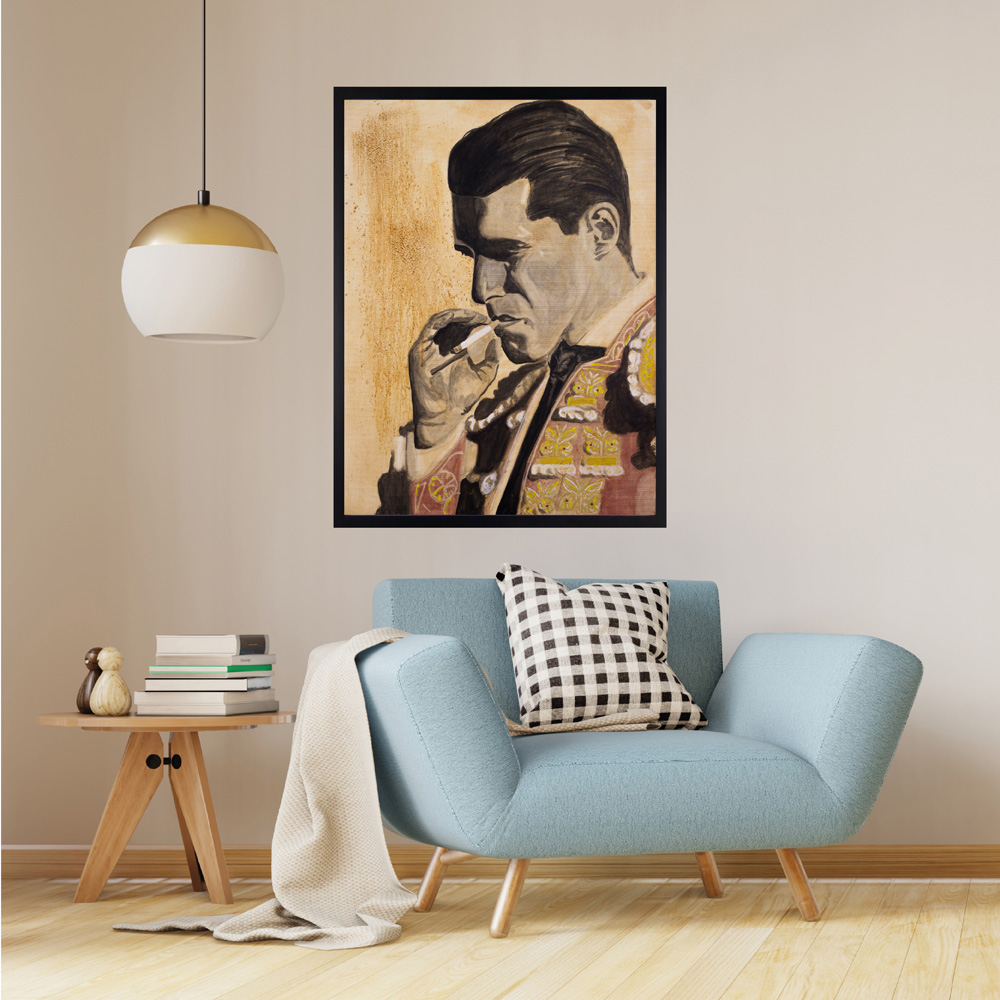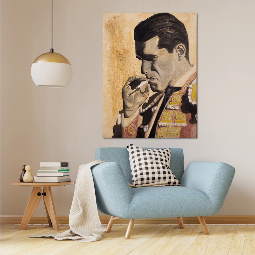 Obra perteneciente a la colección Albero de Nombre «Albero Talavante» con unas dimensiones de 80x60cm, realizada en lienzo montado en bastidor pintado con acrílico y albero de la plaza de toros de “Los Califas de Córdoba”