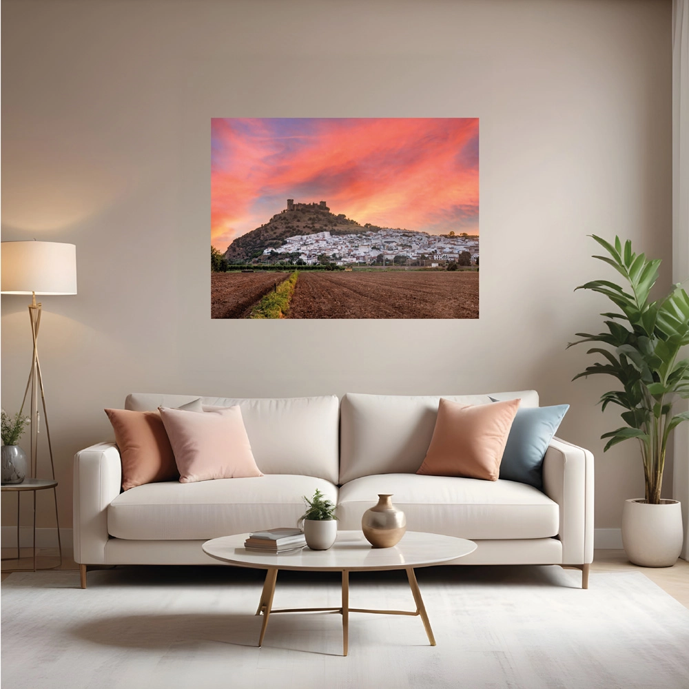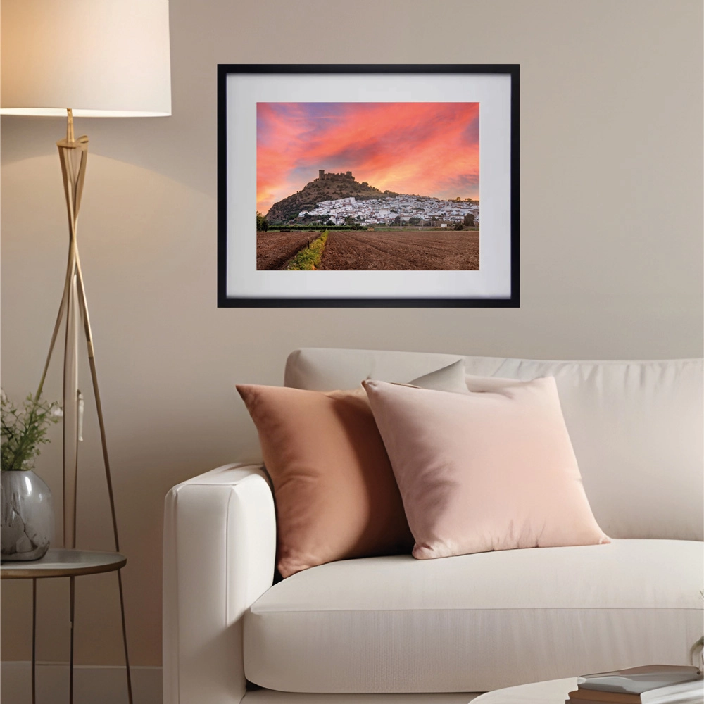 Al contemplar esta obra fotográfica ‘Almodóvar del Río’, siento una profunda conexión con la tierra y la historia de mi Andalucía. La luz del atardecer envuelve el castillo y el pueblo como un abrazo cálido, pintando el cielo con pinceladas de rosa y naranja. Cada casa blanca parece susurrar historias de siglos pasados, de amores y batallas, de vida y muerte. Me transportan a un tiempo en el que el ritmo era más lento y la gente más cercana a la naturaleza. Invito a quien observe esta obra a que se pierda en sus detalles, a que sienta la brisa acariciar su rostro y a que escuche el eco de las campanas en la distancia.
