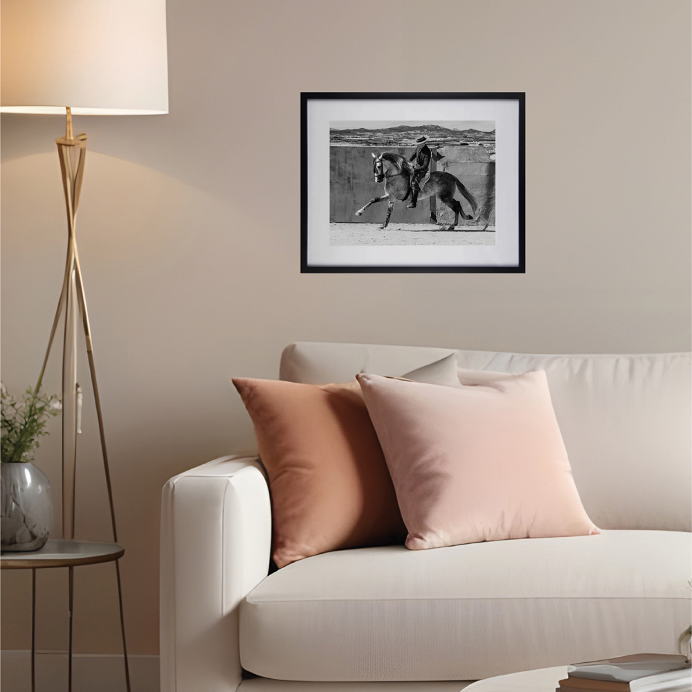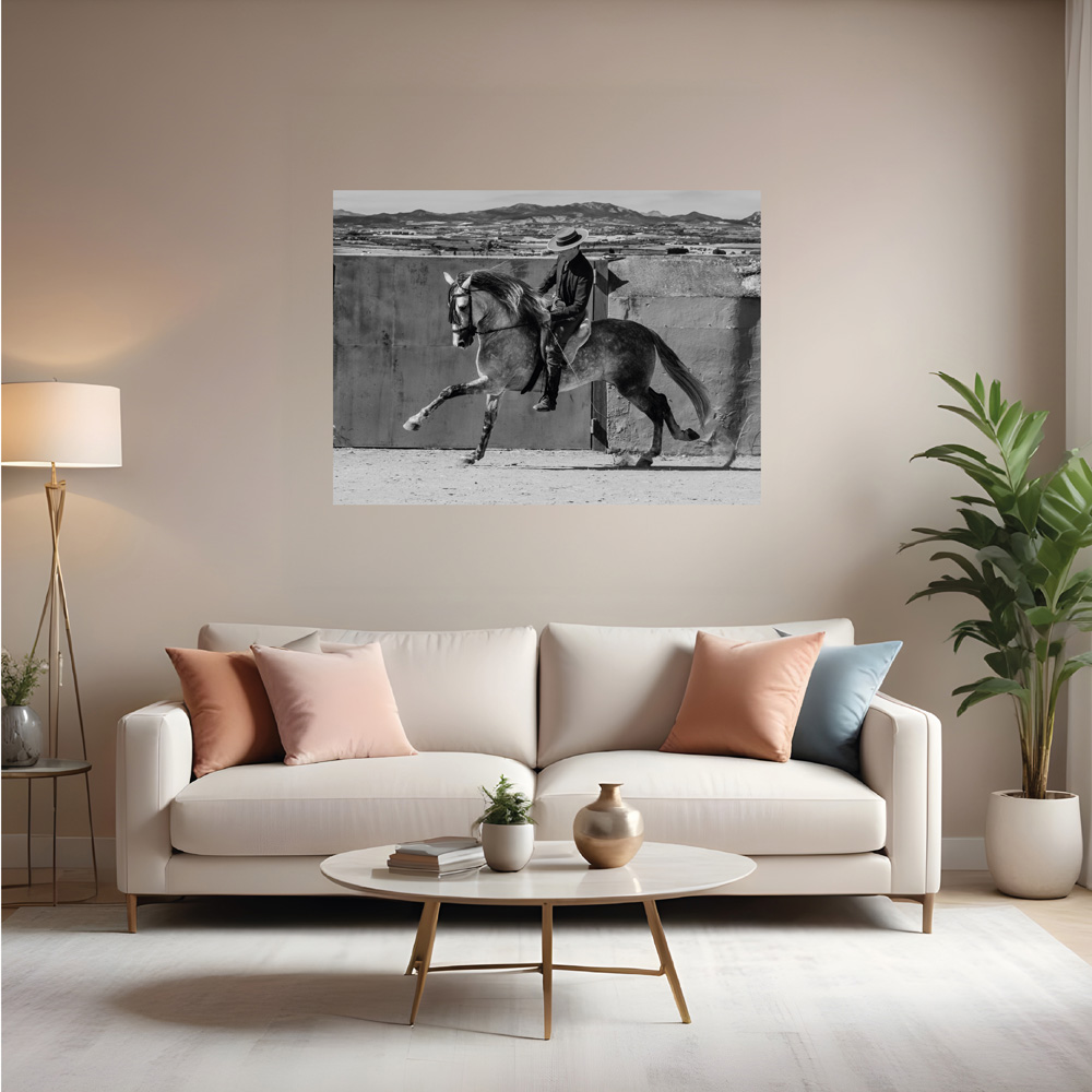 Obra fotográfica llamada Doma Galope, muestra un caballista al galope en su caballo. Que podrás adquirir reproducciones de la misma en diferentes materiales y formatos. Todas las reproducciones son numeradas con un máximo de 15, entregadas con certificado de autenticidad y firmadas a mano.