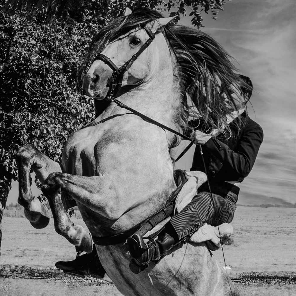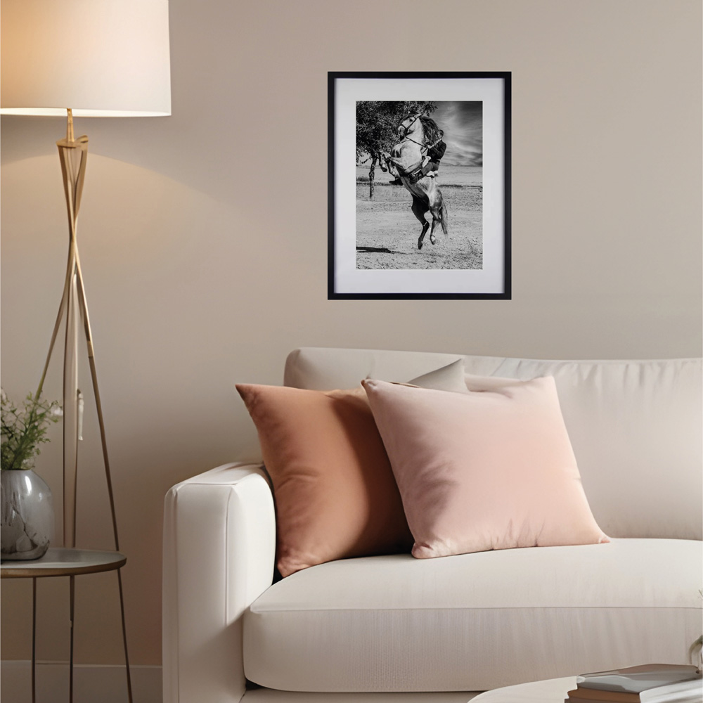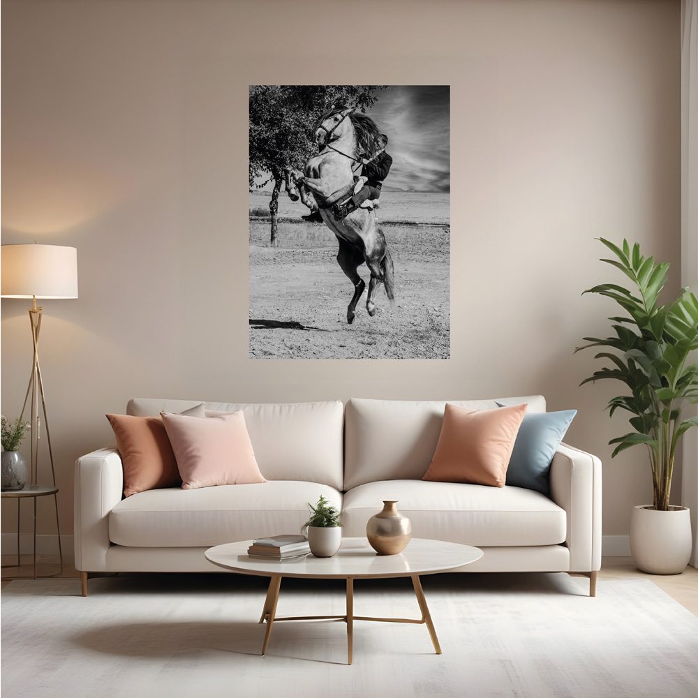 Obra fotográfica llamada Doma Salto, muestra un caballista saltado con su caballo. Que podrás adquirir reproducciones de la misma en diferentes materiales y formatos. Todas las reproducciones son numeradas con un máximo de 15, entregadas con certificado de autenticidad y firmadas a mano.