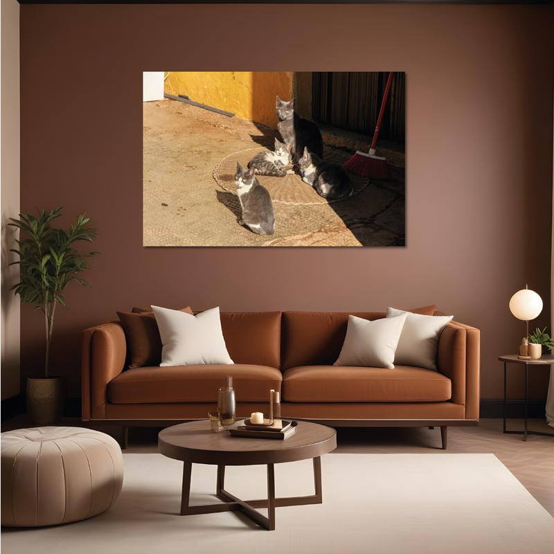 Obra fotográfica llamada Gatos y Escoba, muestra una imagen de unos gatos de un cortijo tomando el sol y una escoba de fondo. Que podrás adquirir reproducciones de la misma en diferentes materiales y formatos. Todas las reproducciones son numeradas con un máximo de 15, entregadas con certificado de autenticidad y firmadas a mano.